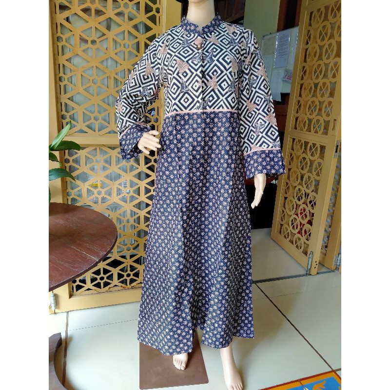 Gamis batik Nurisa katun Kancing depan Full perpaduan motif Tru