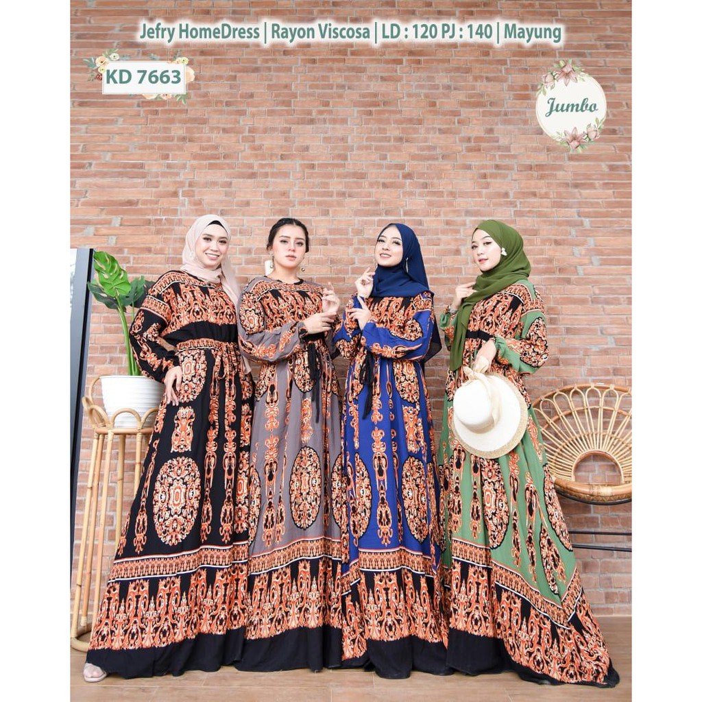 Name: Kd 7663 (isi 4) Jumbo Gamis Asya Rayon Viscosa Batik Sultan Home Dress Mayung