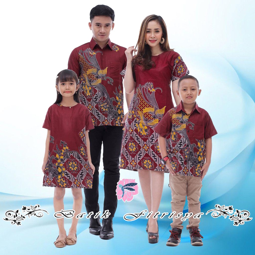 Name: Seragam Keluarga Ibu Bapak Anak - Kemeja Dress Batik Burung Kenari Merah - Murah Laris Promo Terbaru