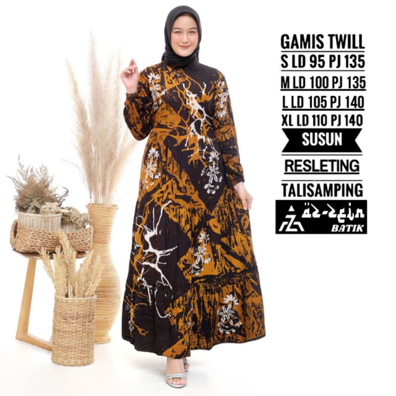 Name: Az Zein Batik Gamis Twill Ori Motif Madongan Lengan Karet Busui Frendly(s M L Xl)