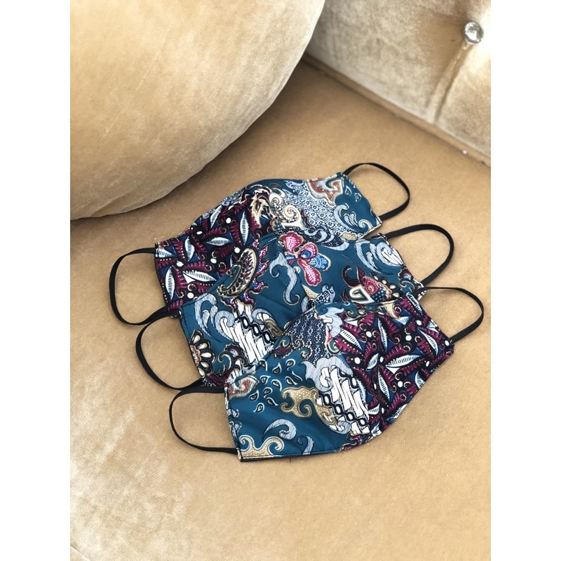 Name: Masker Motif Batik Kain Non Medis Hijau Toska Biru Ready Stok Anak Dewasa Earloop/ Headloop Murah